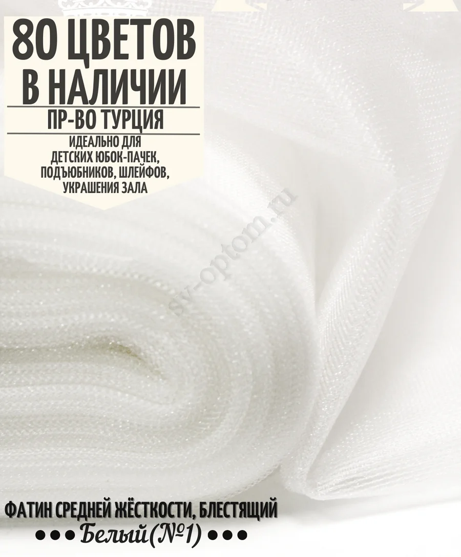 Фатин средней жесткости. Используется для изготовления праздничных и повседневных юбок, ярких сценических костюмов, в декоре свадеб, украшениях авто, упаковка подарков.