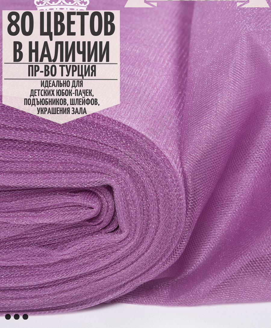 Фатин средней жесткости. Используется для изготовления праздничных и повседневных юбок, ярких сценических костюмов, в декоре свадеб, украшениях авто, упаковка подарков.