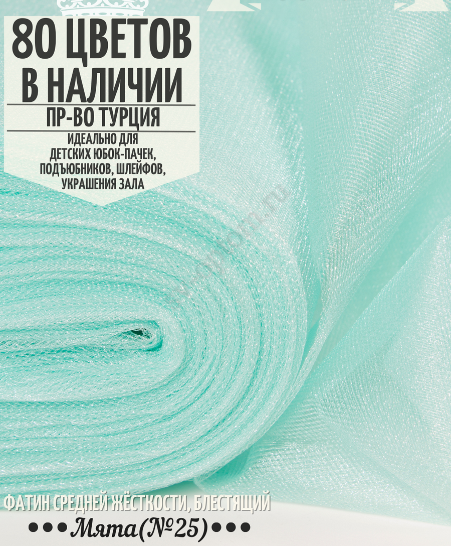 Фатин средней жесткости. Используется для изготовления праздничных и повседневных юбок, ярких сценических костюмов, в декоре свадеб, украшениях авто, упаковка подарков.