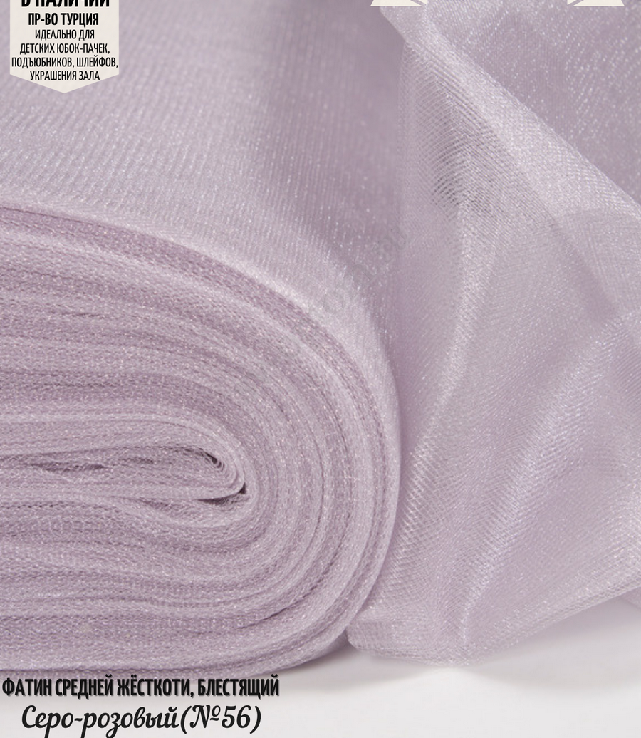 Фатин средней жесткости. Используется для изготовления праздничных и повседневных юбок, ярких сценических костюмов, в декоре свадеб, украшениях авто, упаковка подарков.