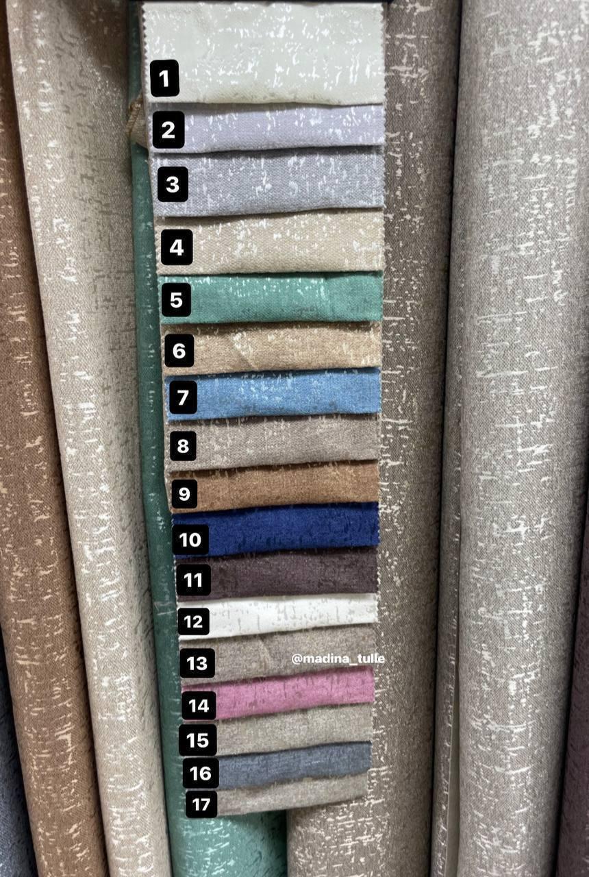 Внешняя сторона портьеры имитирует лен с вышитым рисунком в виде штрихов с небольшим блеском. Состав 100 процентов полиэстер, плотность 230 гр.м2.Светонепроницаемость 60-70 процентов. Оттенок изделия может отличаться от представленных на сайте фотографий, в силу особенностей цветопередачи фототехники и монитора.